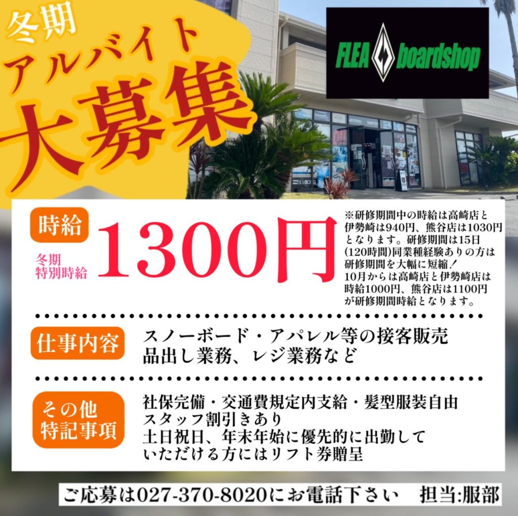 伊勢崎店・高崎店 冬期特別時給1300円~ (研修期間は時給940円、10月からは研修期間時給1000円) 熊谷店 冬期特別時給1300円~ (研修期間は時給1030円、10月からは研修期間時給1100円)